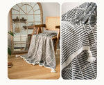 Drape yourself in comfort or add a stylish accent to your living space with this beautifully designed Knit Throw Blanket. Featuring a modern geometric pattern and charming tassels, this versatile blanket is perfect for snuggling on the sofa, adding an extra layer of warmth to your bed, or keeping cozy in the office.