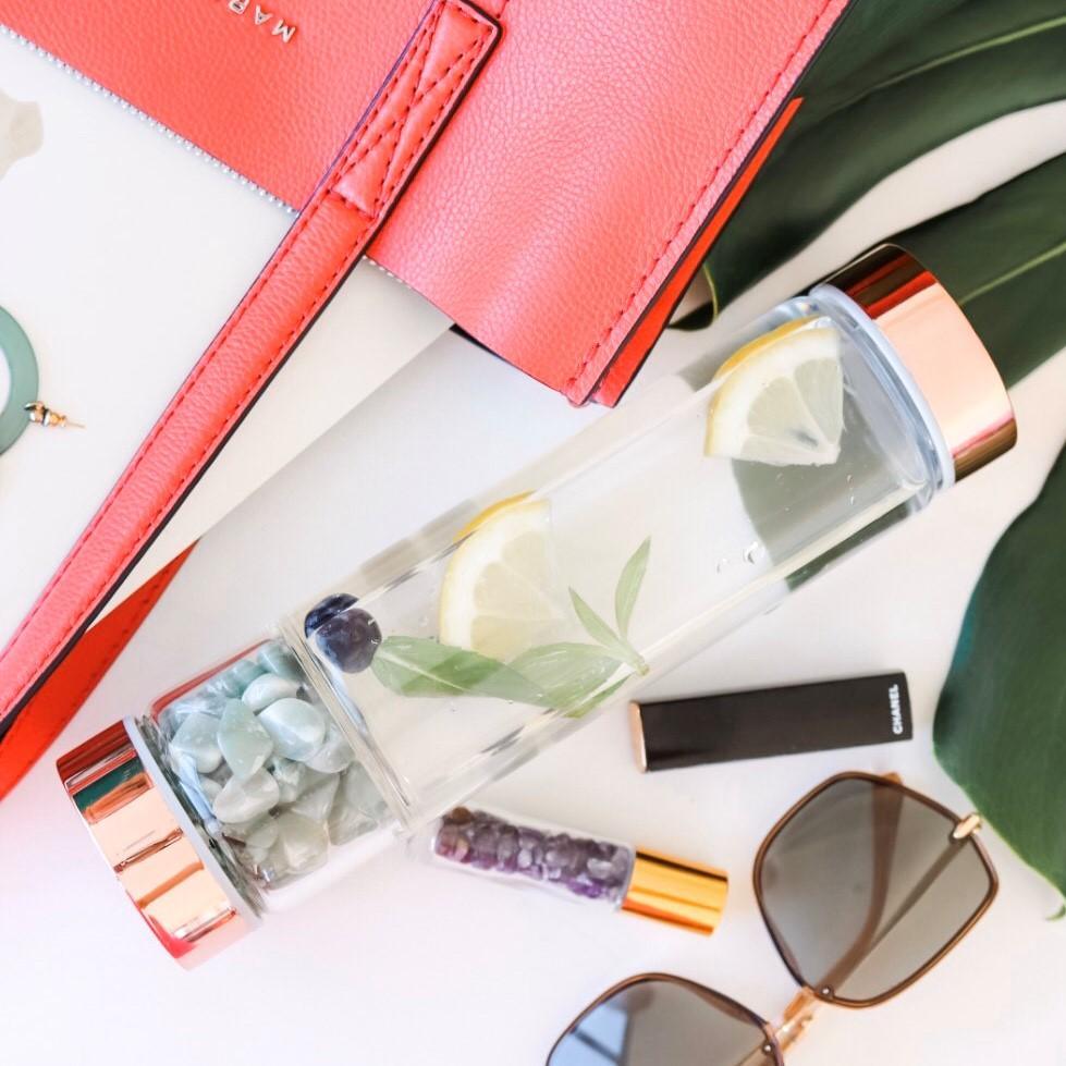 Rose Gold Crystal Bottle with Gemstone Base and Tea Infuser